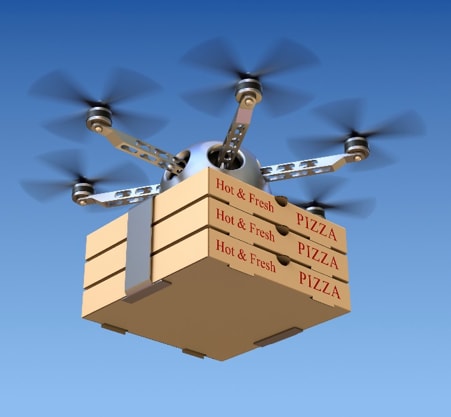 Figure 4: Although currently not allowed by the FAA, pizza, or any other kind of goods deliver via drones might not be far away.