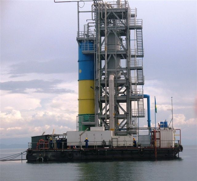 One of the more bizarre of the world’s phenomena is that of the exploding lake, of which there are only three in the world: Lake Nyos and Lake Monoun in Cameroon and Lake Kivu on the border of Rwanda and the Democratic Republic of the Congo. In two recorded cases, dissolved carbon dioxide has suddenly emerged from the depths as the CO2 displaces water. At Lake Nyos, for example, an eruption in 1986 suddenly released more than 80,000,000 m³ of CO2, killing 1,700 people and 3,500 livestock by asphyxiation. To safely harness some of the 1.94 trillion ft.3 of dissolved biogas in Lake Kivu, a project called KivuWatt developed by U.S. power developer ContourGlobal, is extracting methane from the lake to generate electricity. Currently in its first phase, the project is generating 25 MW of electricity to the local grid and in the next phase is anticipated to generate 75 MW.