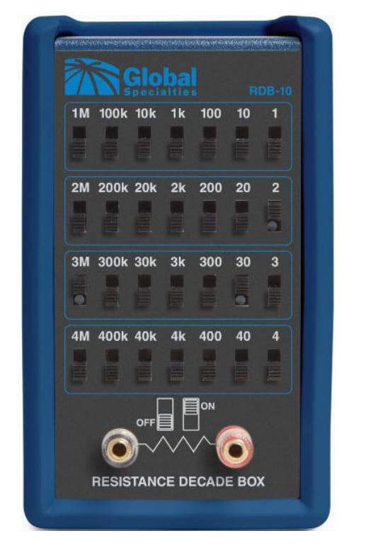 There are quite a few good options of substitution boxes at a a reasonable cost including the Global Specialties’ RDB-10 and the Extech 380400. Both allow you to dial-in a variety of resistances from the single ohms all the way up to multiple mega-ohms.